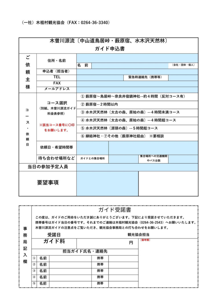 下記の内容をダウンロード又はプリントアウトの上、必要項目を記入してメール又はFAXにてお申込下さい。