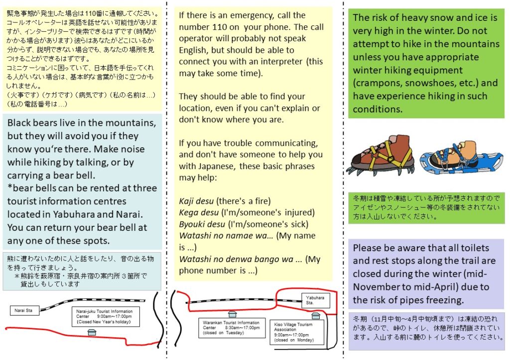 鳥居峠を越える場合の注意点 Points to note when crossing Torii Pass
