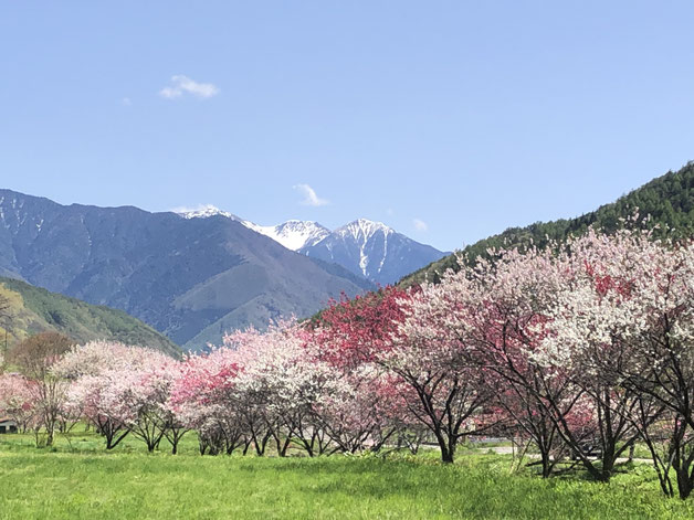 花桃は桜の1週間遅れぐらいで見頃になります。木祖村には花桃の木が多く各所で鮮やかな花が見られます。